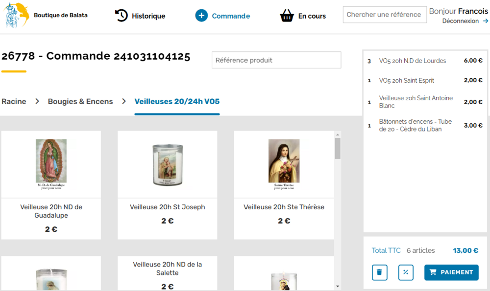 Chaque utilisateur, s'il y est autorisé pour une communauté (paroisse ou pastorale) peut passer une commande en ligne !