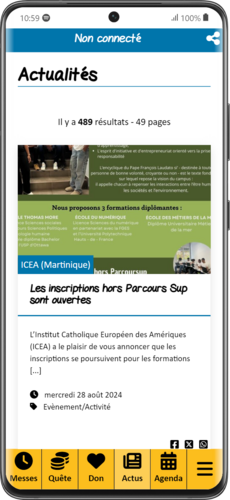 Conçue spécialement pour les smartphones, permettant d'accéder aux informations essentielles du diocèse (horaires, etc.)